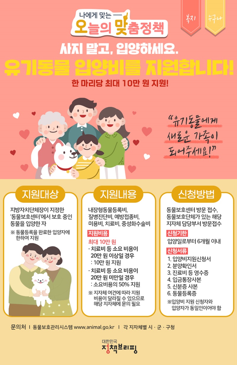유실·유기동물 입양비 지원, 공짜 입양 어떻게 받을 수 있나?